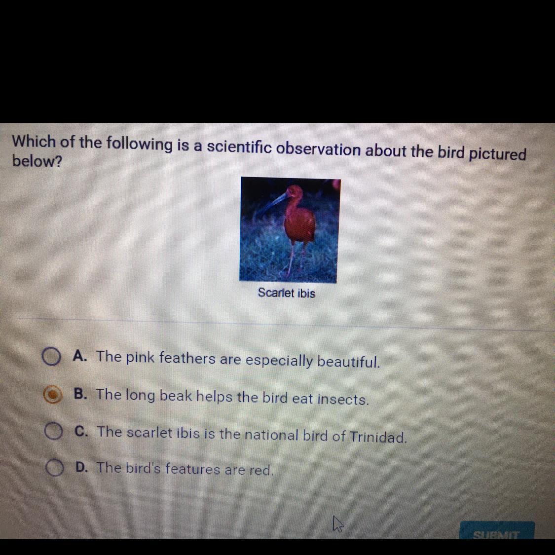 Which of the following is a scientific observation about the bird pictured