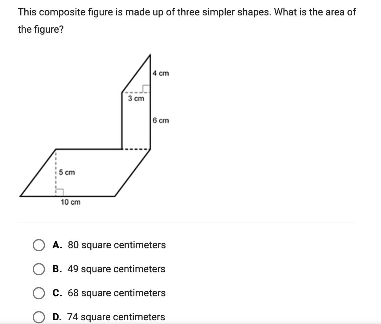74 ← this is the full area of the shape
