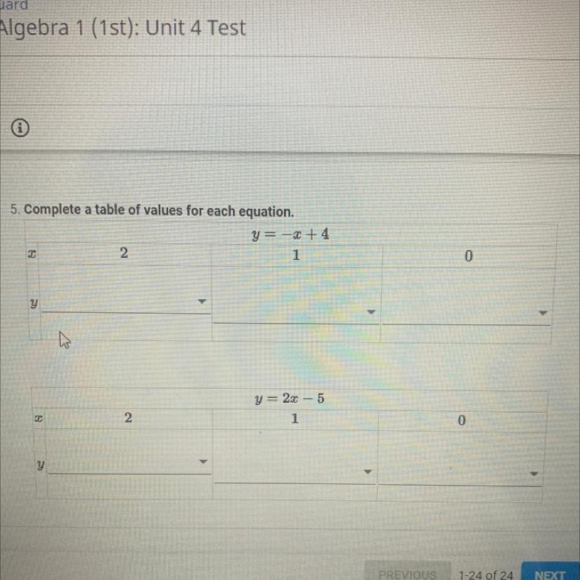 When we plug in x = -1, we get the minimum value of -5, which is included because its x-value was included. The, we plug in x = 5 to find the range's maximum and this is excluded because its x-value was excluded.