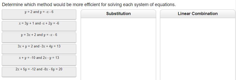 Thus, the system of equations are shown based on the easiest method to solve in the picture.