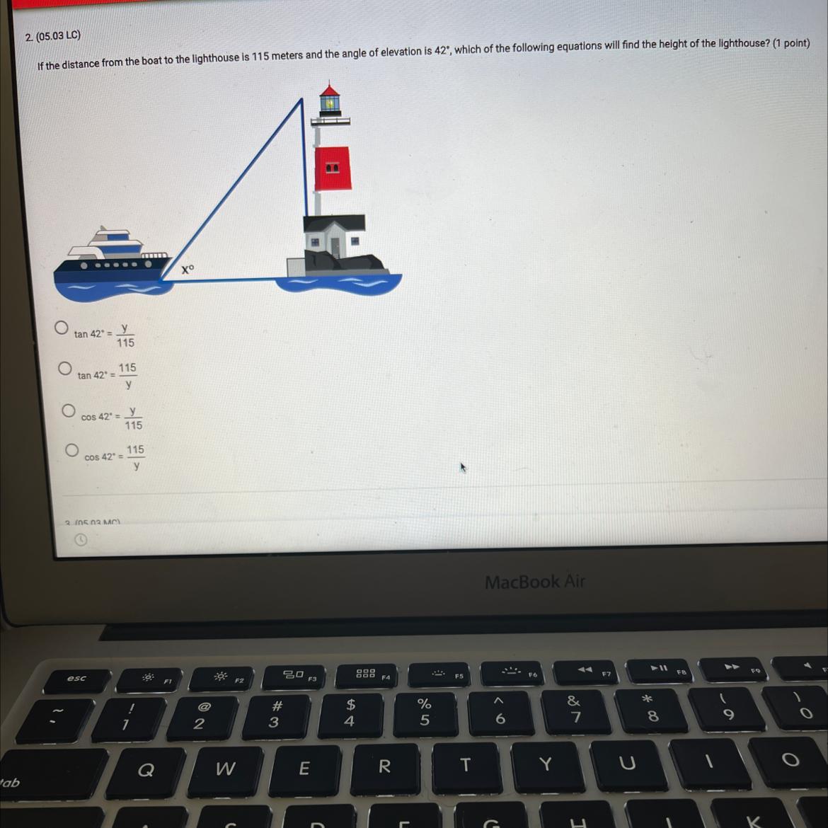 (d)distance from the boat to the lighthouse =115 meters
