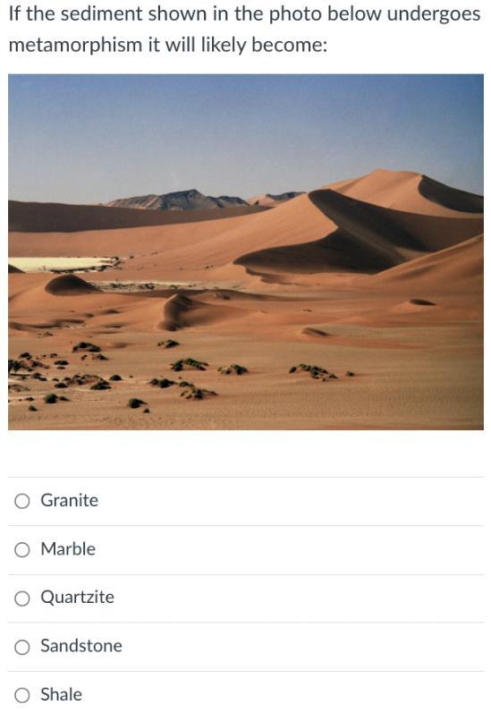 (a) If the sediment shown in the photo undergoes metamorphism it will likely become Sandstone.