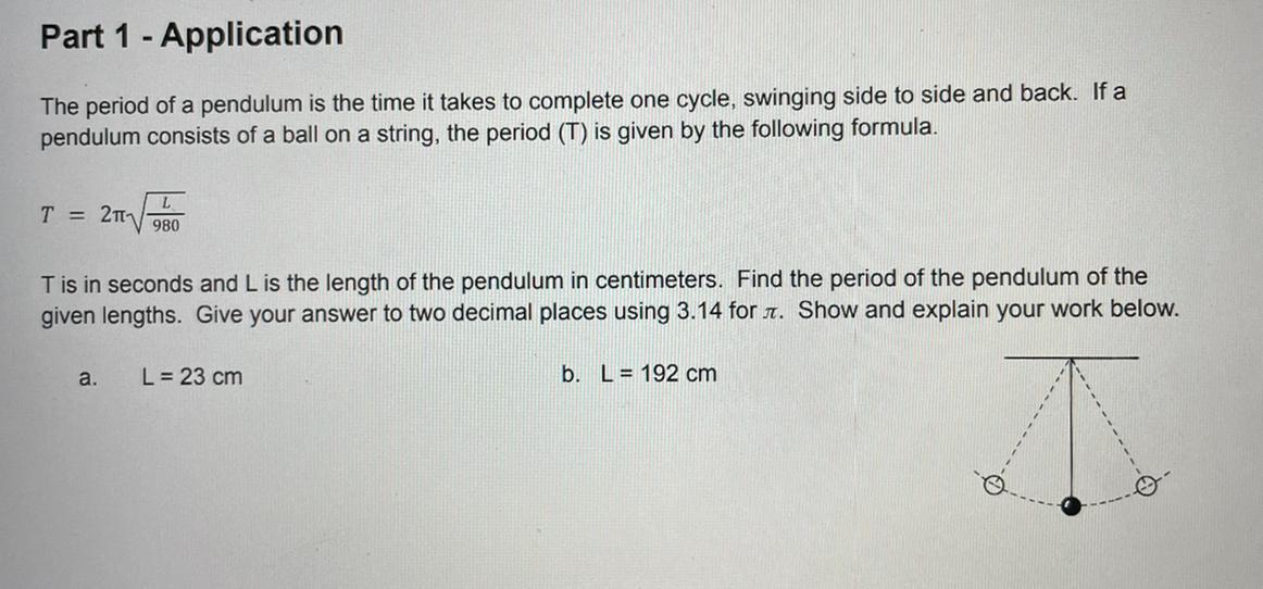 a. The period of the pendulum for the given Length = 23 cm is 0.962 s