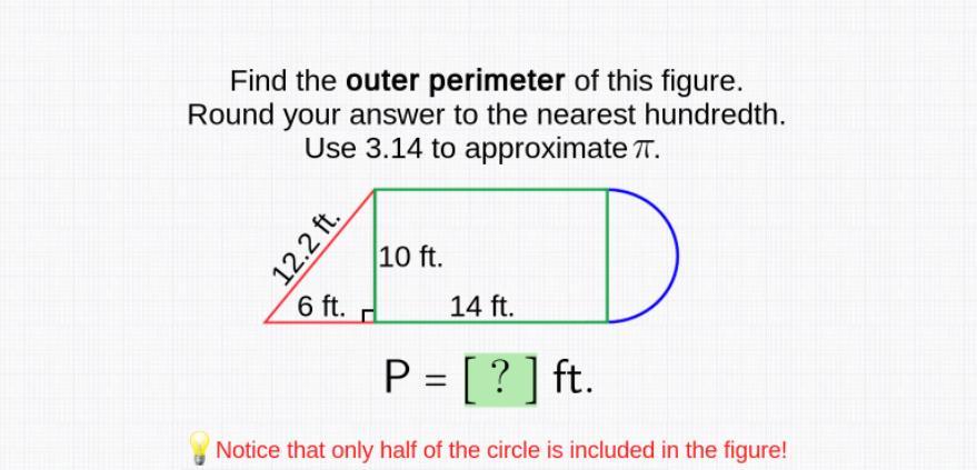 Perimeter = 12 + 6 + 14 + 14 + 15.7