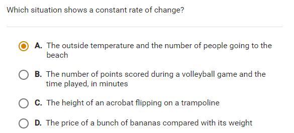 You are expected to apply your knowledge of the real world to the given situations in order to identify whether the "rate of change" is constant. A constant rate of change means the dependent variable has a linear relationship to the independent variable.