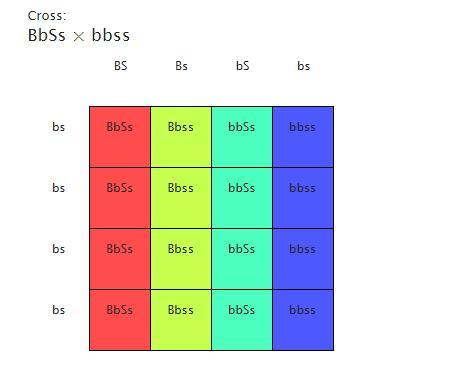 progeny genotype = 4BbSs, 4Bbss, 4bbSs and 4bbss (see the attached image)