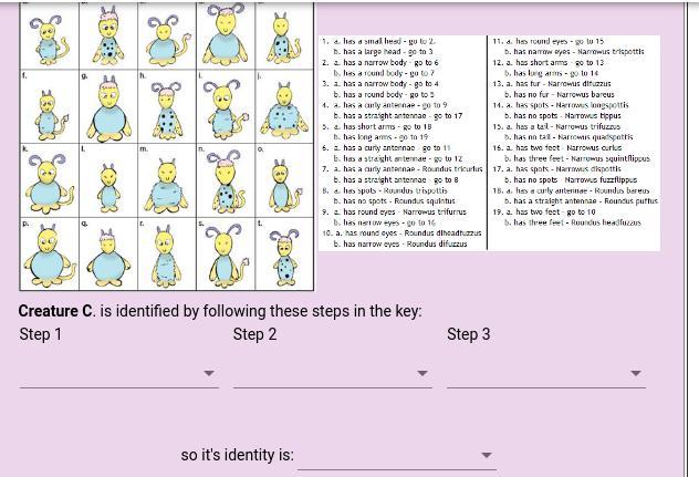 A dichotomous key is a classification tool used to identify organisms based on morphological or behavioral characteristics. Individual C is a <em>Roundus tricurlus.</em>