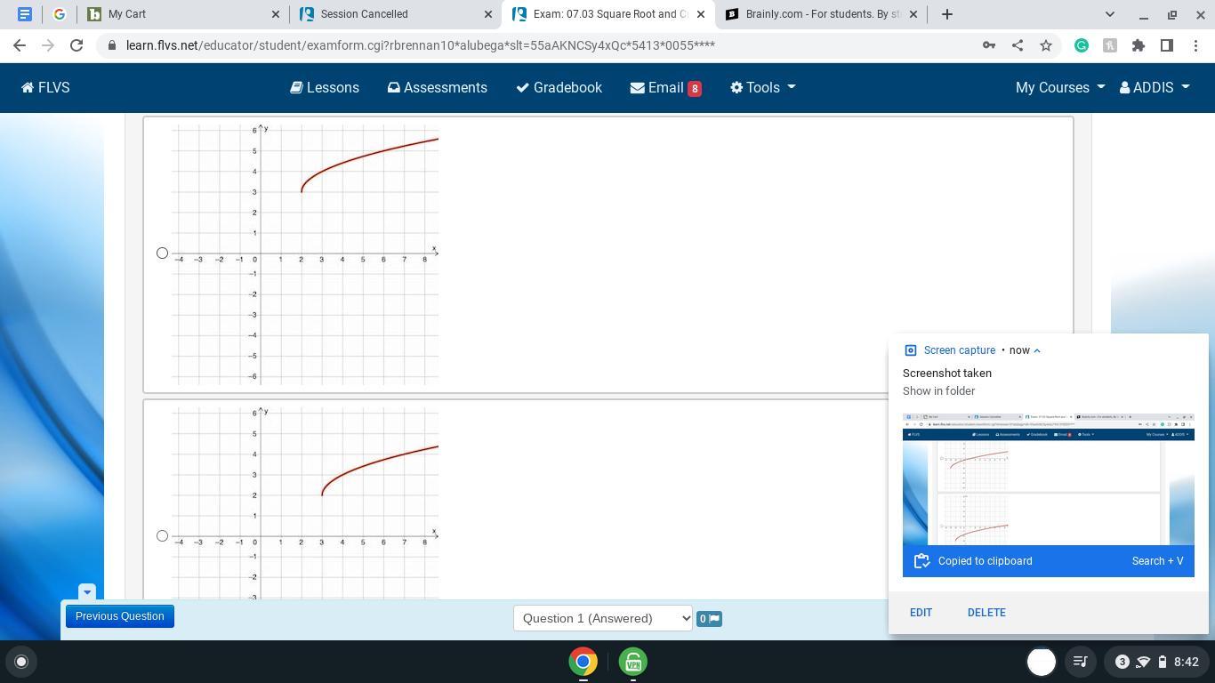 Notice that the only graph that contains these two points is the last graph (the bottom graph on the second image), so that is the correct option.