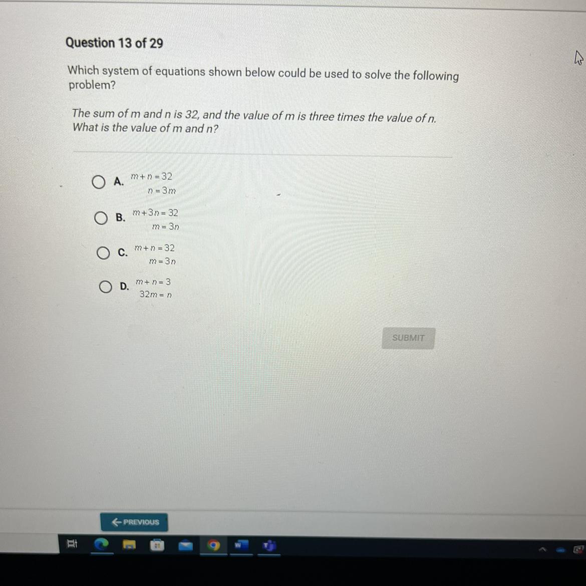 2. The value of m is three times the value of n ⇒ m=3n