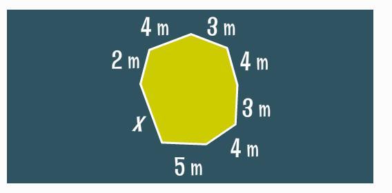 What is the missing length of the polygon shown below if the perimeter is 32 m