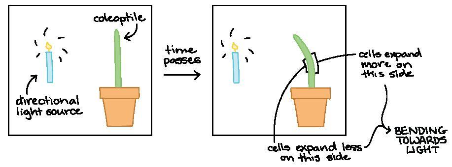 We can rule out cotyledon because it is the embryonic leaf of the seed and it doesn't take part in phototropism.