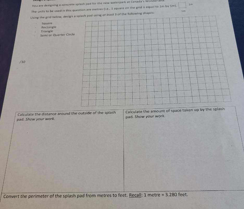 The distance around the splash is 27.7 meters and the amount of space on the splash is 31.5 square centimeters