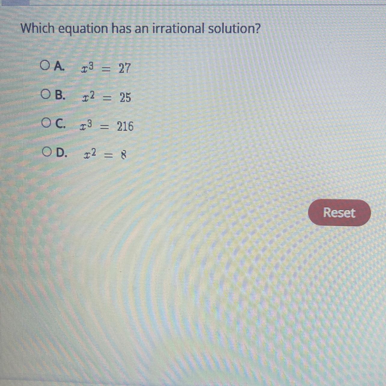 D: x= 2.8284...etc