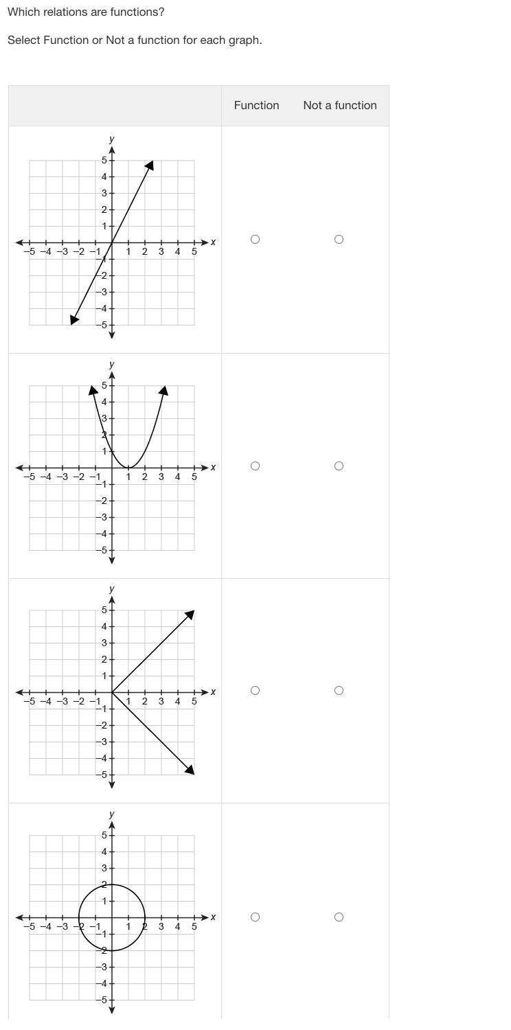 Use the vertical line test to determine whether or not a graph represents a function.