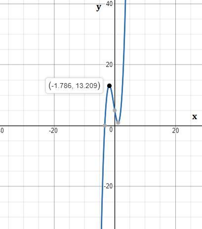 The coordinates, to the nearest tenth, of the relative maximum of the graph is (-1.8,13.2)