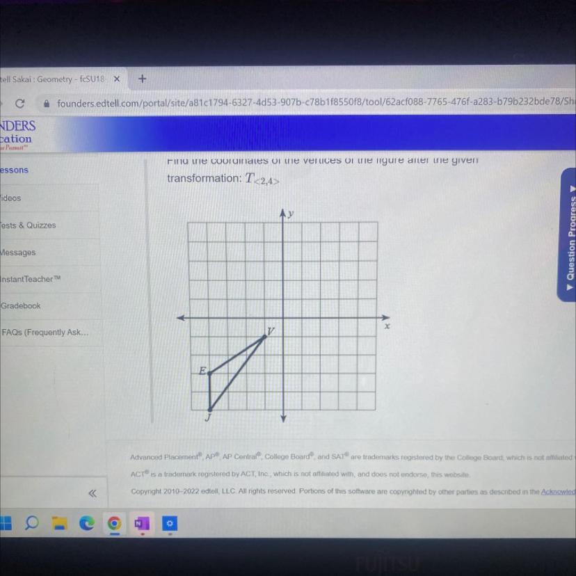 • The coordinates of the vertices of the figure after the given transformation T <2,4>