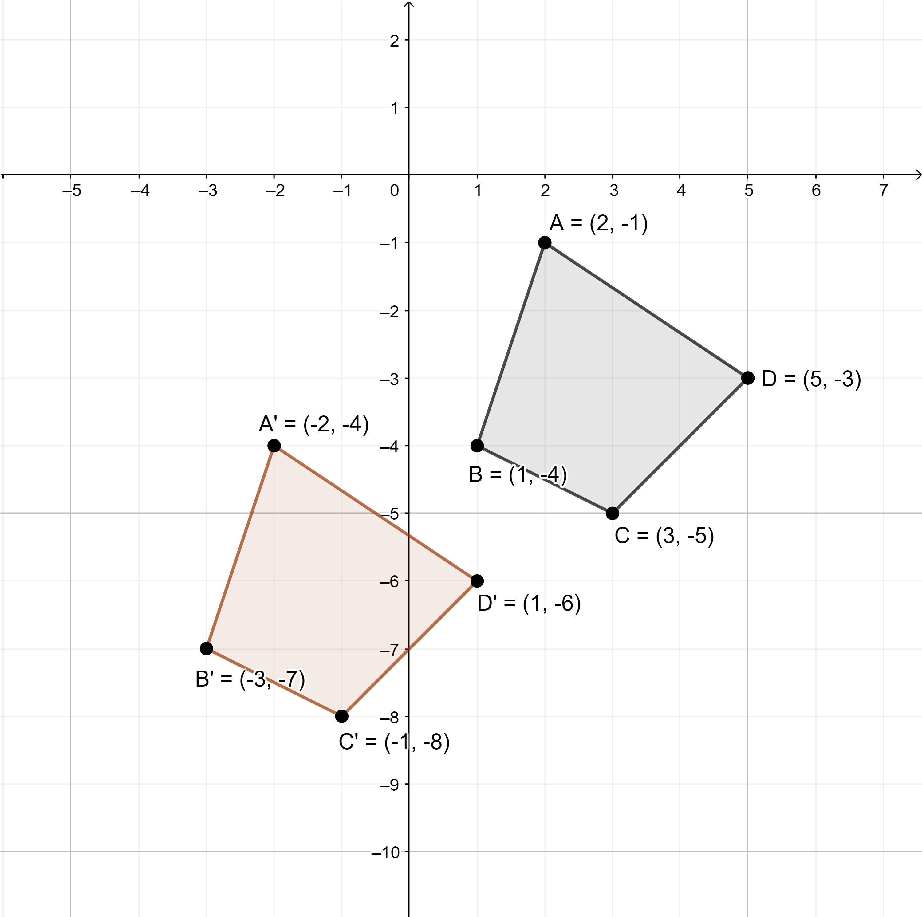 D (5, -3) ⇒ (5 - 4, -3 - 3) = D' (1, -6)