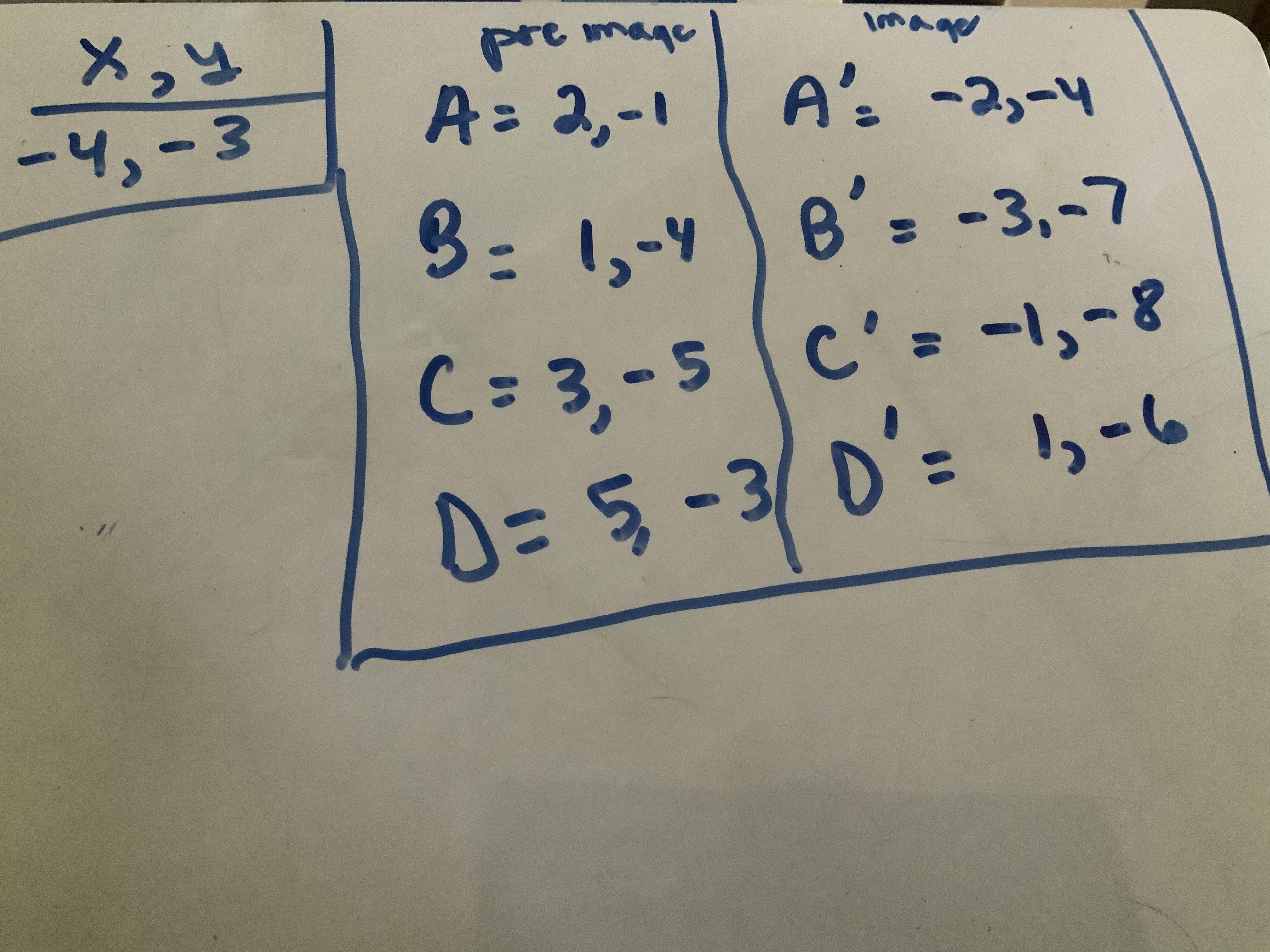 C (3, -5) ⇒ (3 - 4, -5 - 3) = C' (-1, -8)