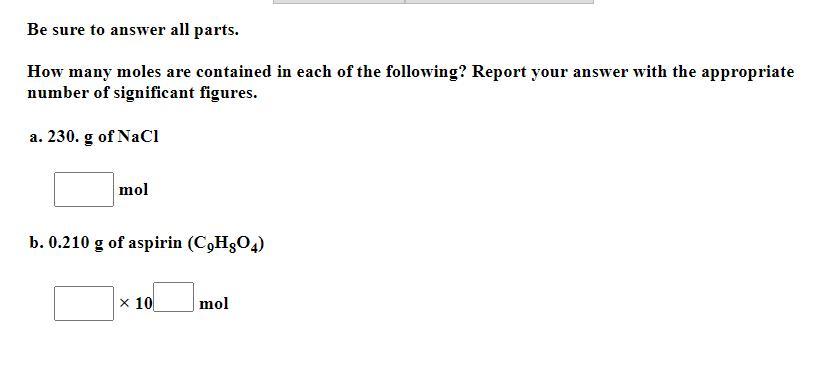 Thus, the moles are a) 3.935 and b) 0.001165 mol.