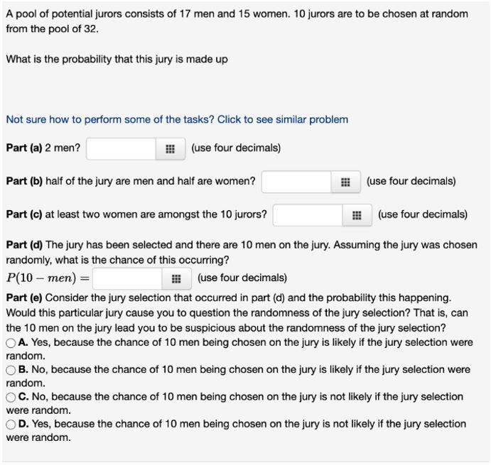 <h3>The probability that half the jury are men</h3>