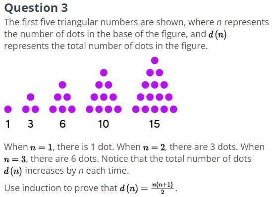Since d(1) = 1, we can assert that the induction proves that the value of n is true for n = 1, and there is only one dot. Also, the mathematical induction is true for all natural numbers (n).