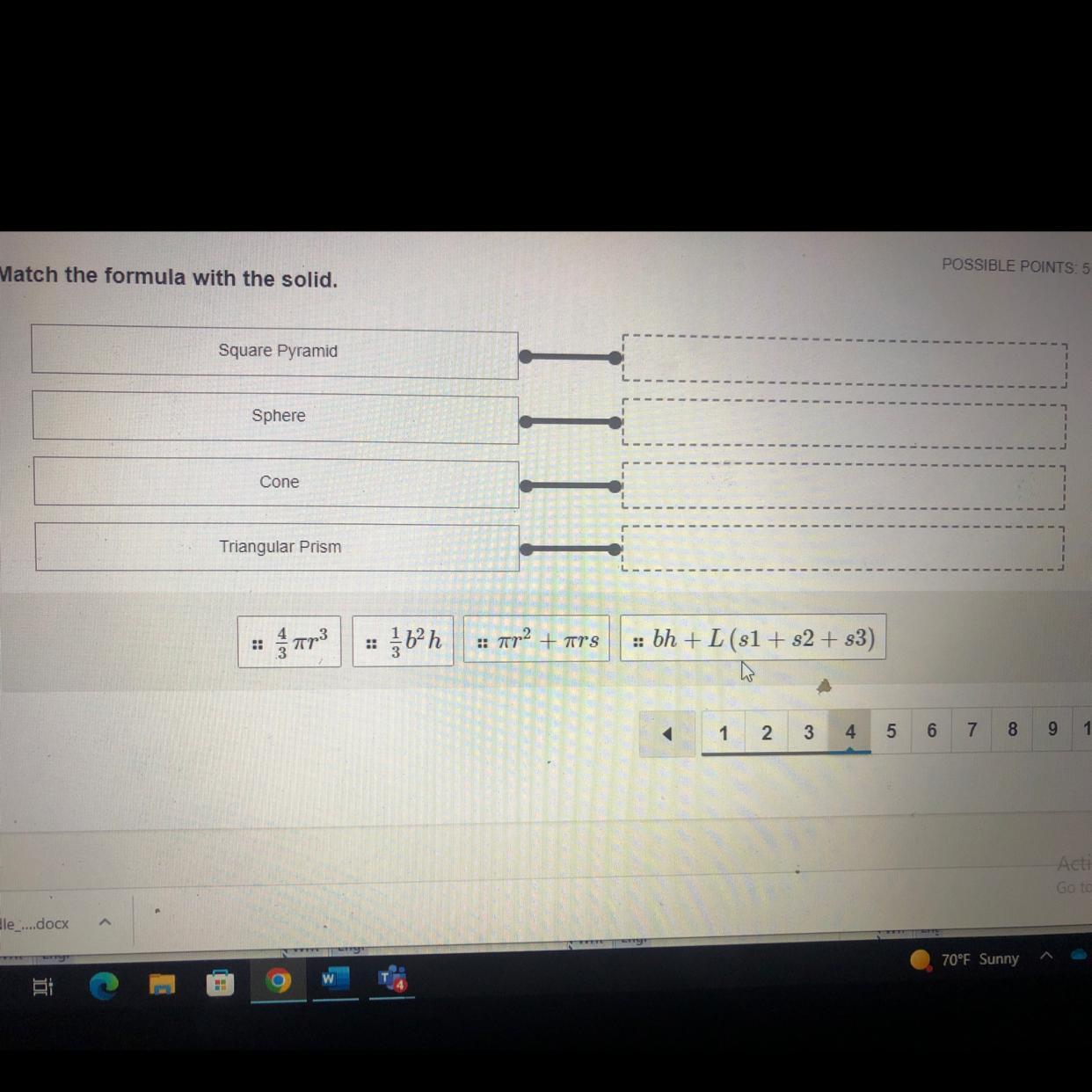 The formula of the solid shapes are Option 1, 2,3,4 ----Option B,A,C,D