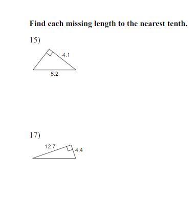 To find the missing lengths, you need to use the Pythagorean theorem: