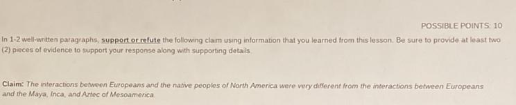 For evidence you can talk about how europeans gave natives diseases and decreased their population, which led to the end of a native civilization (I think it was the Tainos.)