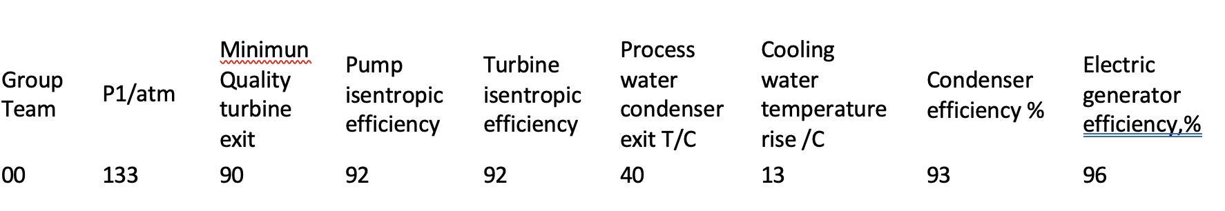 1. temperature, pressure, and entropy at the state points;
