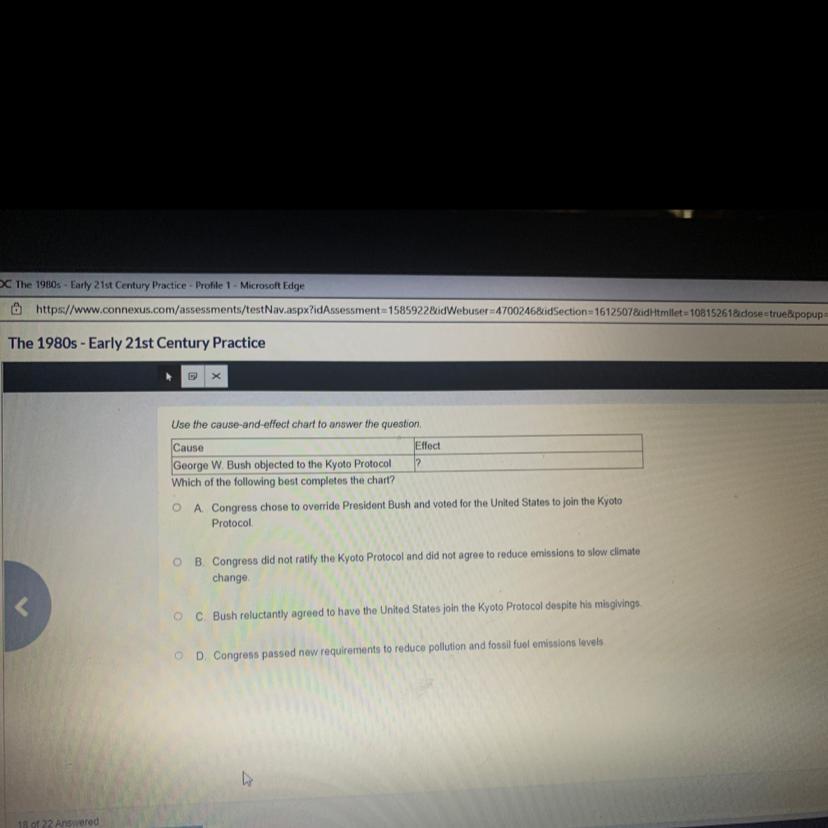 Based on the image presented ,George W Bush objected to the Kyoto Protocol and the effect was option B.