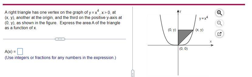 . Substitute this into the found equation so that the Area A of the triangle can be expressed as a function of x: