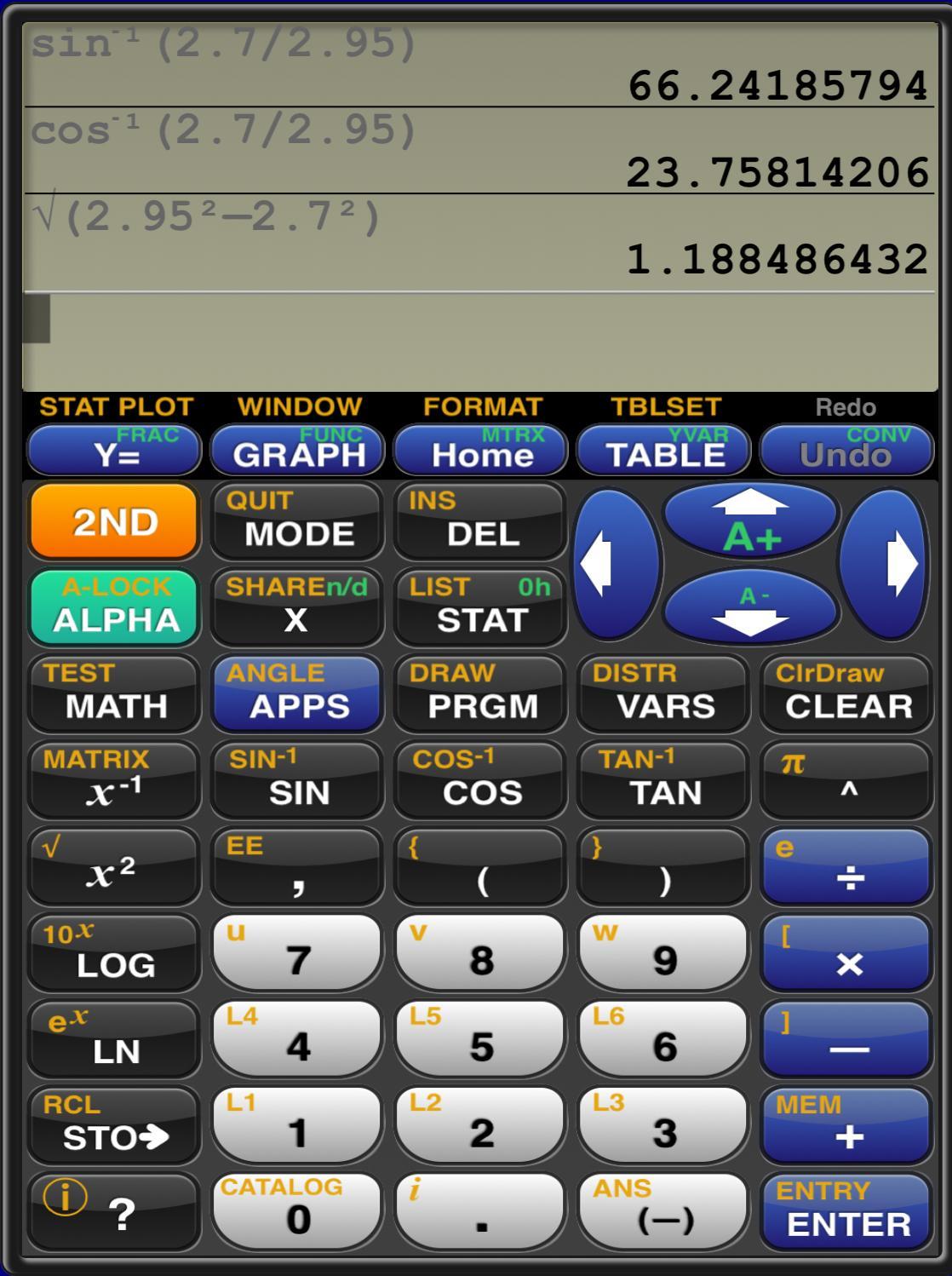 A = arcsin(2.7/2.95) ≈ 66°