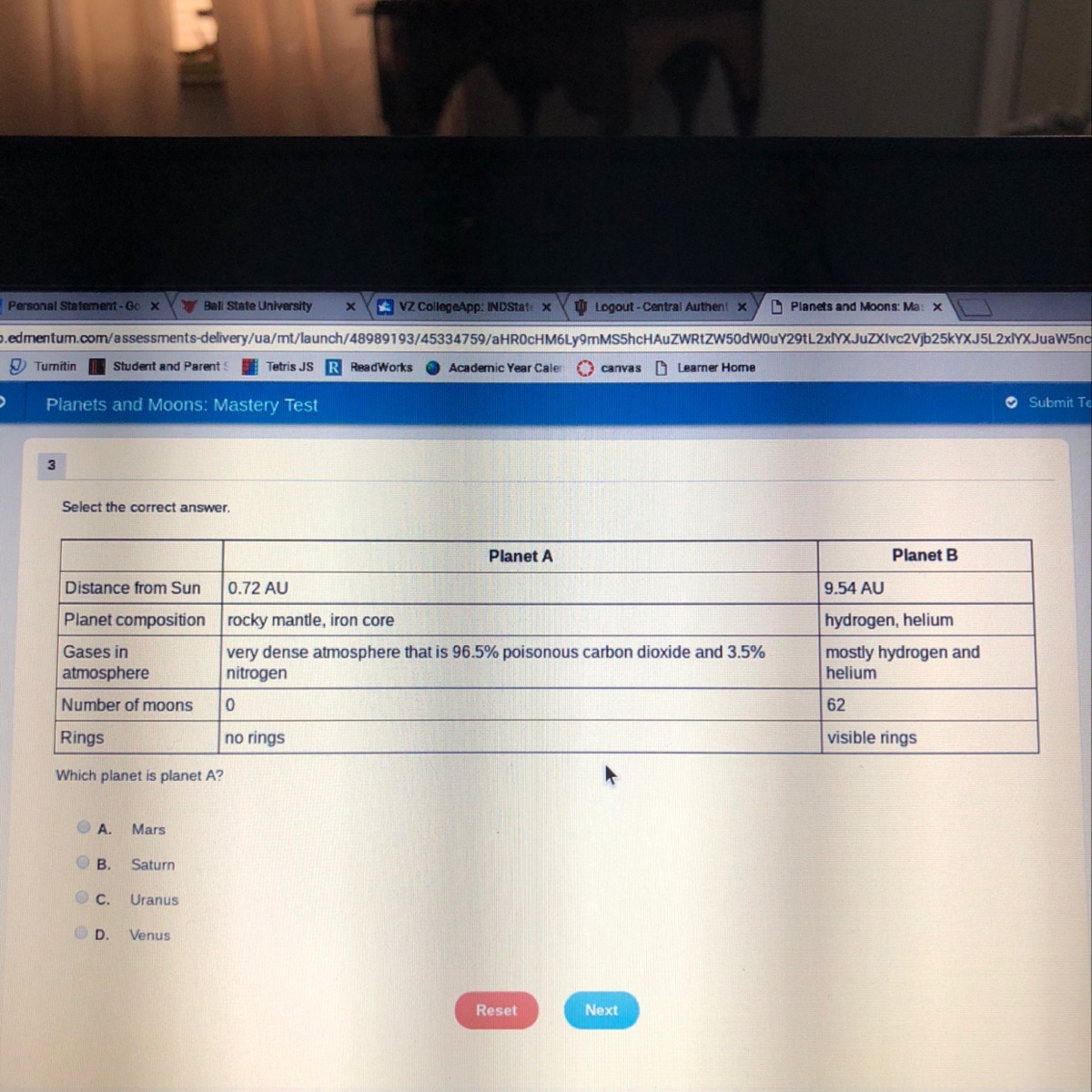 The answer for your question would be D, because your planets are Venus,Murcury,Earth,Mars,and so on.