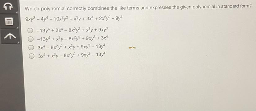 Polynomials come in various varieties. Monomial, binomial, and trinomial, respectively.