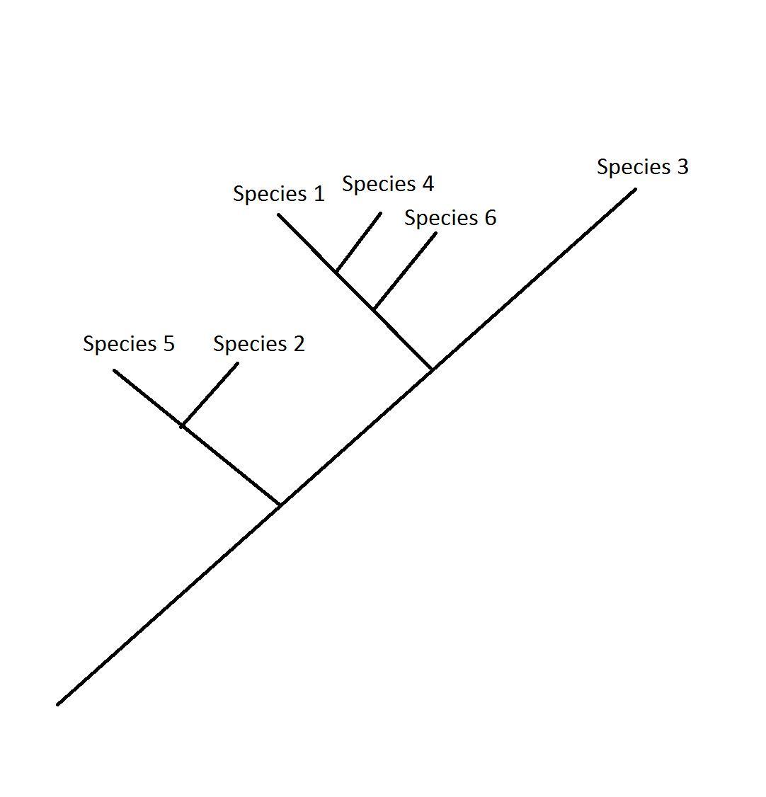 In this phylogeny, species 5, 1, 6 and 3 originated from vicariance processes, and their position in the phylogenetic tree is due to the order of separation of the mentioned regions. Species 2 and 4 originated from dispersal processes, and are expected to have a closer evolutionary relationship with the species that were in the areas from which they were dispersed, in this case, with Africa and Australia respectively.