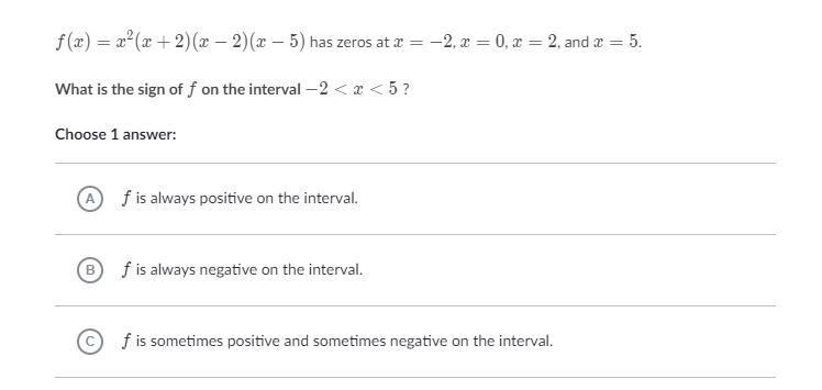f is sometimes positive and sometimes negative on the interval