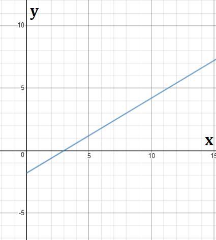 See attachment for the graph of y = 0.6x - 1.8