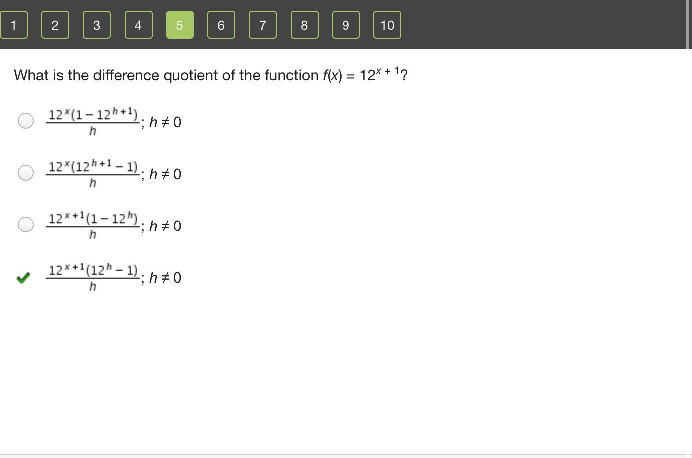 The Answer is D or 12^x+1 (12^h - 1) / h