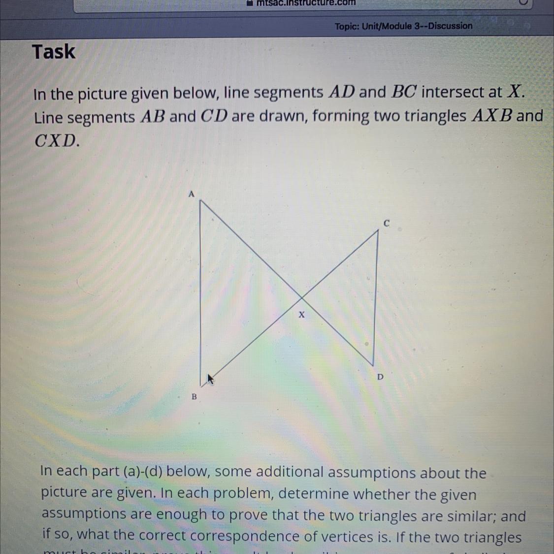 a. In the question, we are given 2AX = 3XD. An arbitrary triangle AXB can be drawn where one extends AX and choose a point D on the extended line in order for 2AX = 3XD. Also, extend BX and choose a point C on the line so that 2BX = XC. Even though they both satisfy the condition, they're not similar.