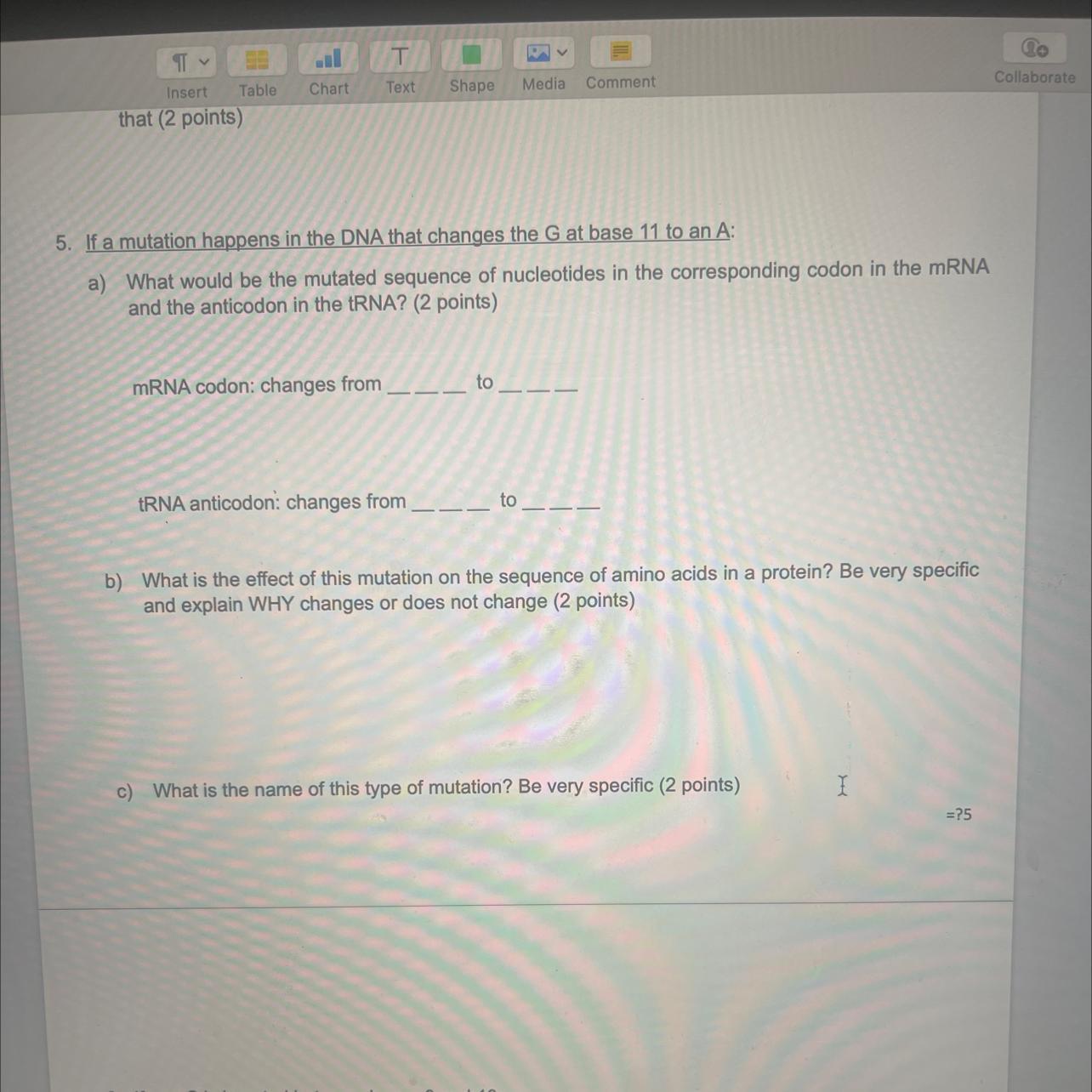 The mutation that changes the base G in the DNA to A will result in the following corresponding changes in the mRNA and tRNA: