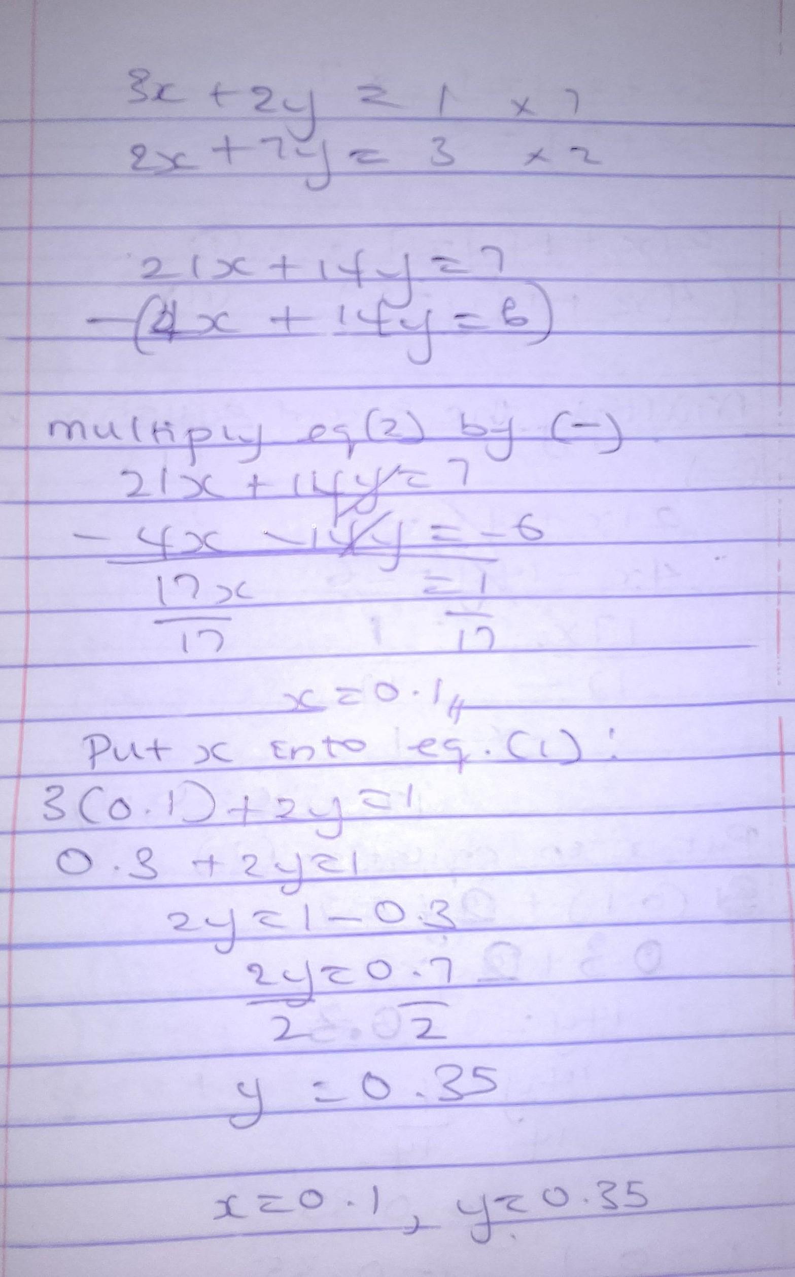 x = (1 - 2y)/3 = (1 - 2×7/17)/3 = (1 - 14/17)/3 =