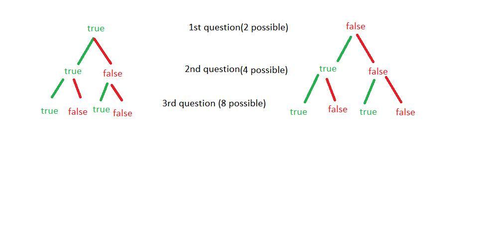 combinations which is 64 total combinations by the time you answer all 6 questions.
