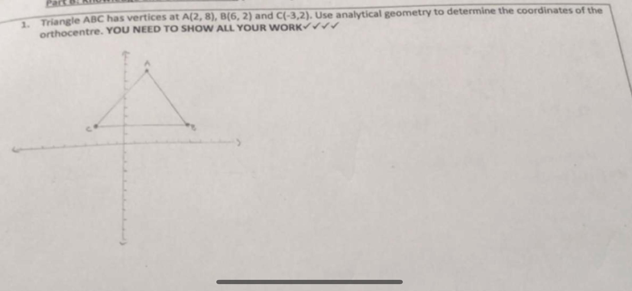 Therefore, the orthocentre for the triangle ABC is (1.85, 5.88).