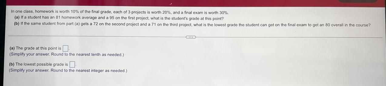 a) At this point the student has 81 in homework and 95 on the first project.