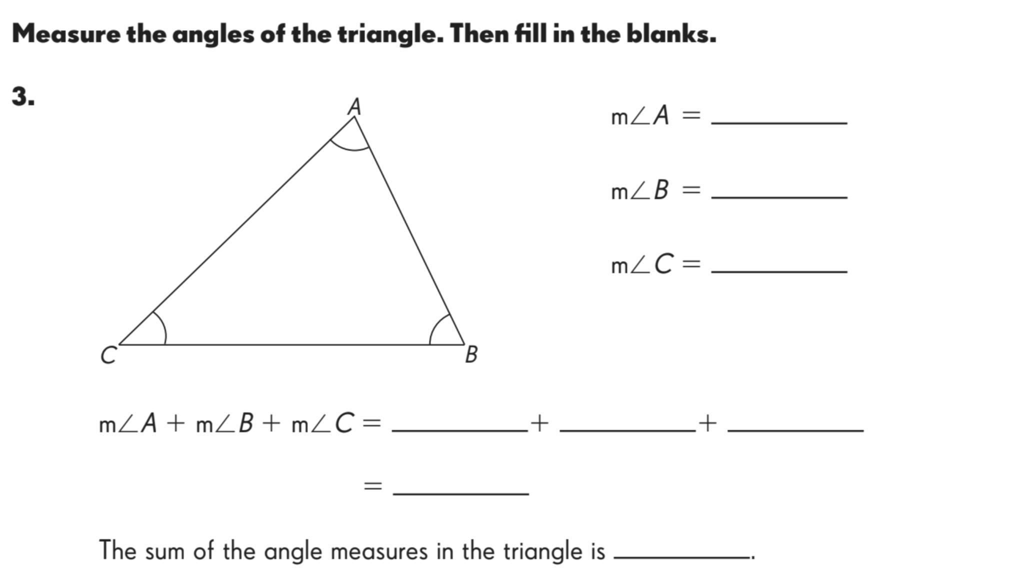m ∠ A + m ∠ B + m ∠ C = 180°