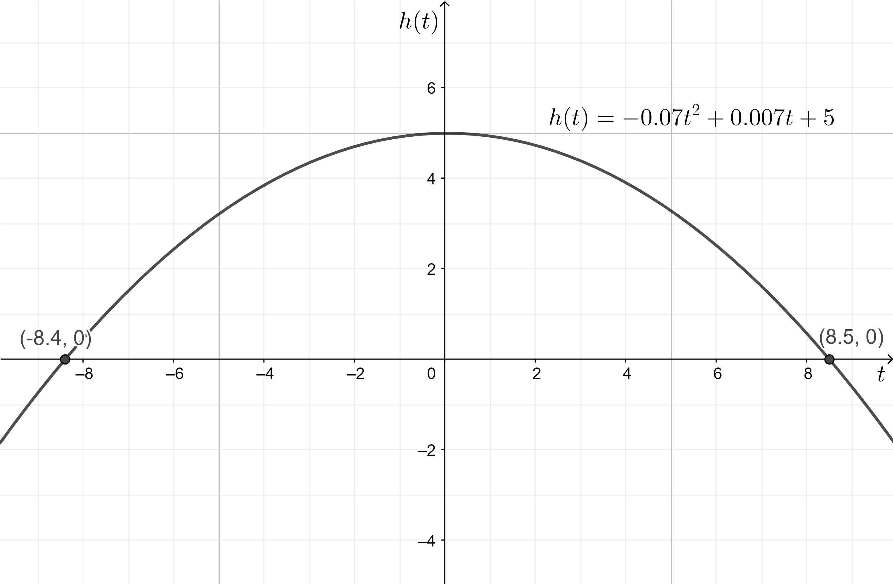 Substitute the values into the quadratic formula and solve for t: