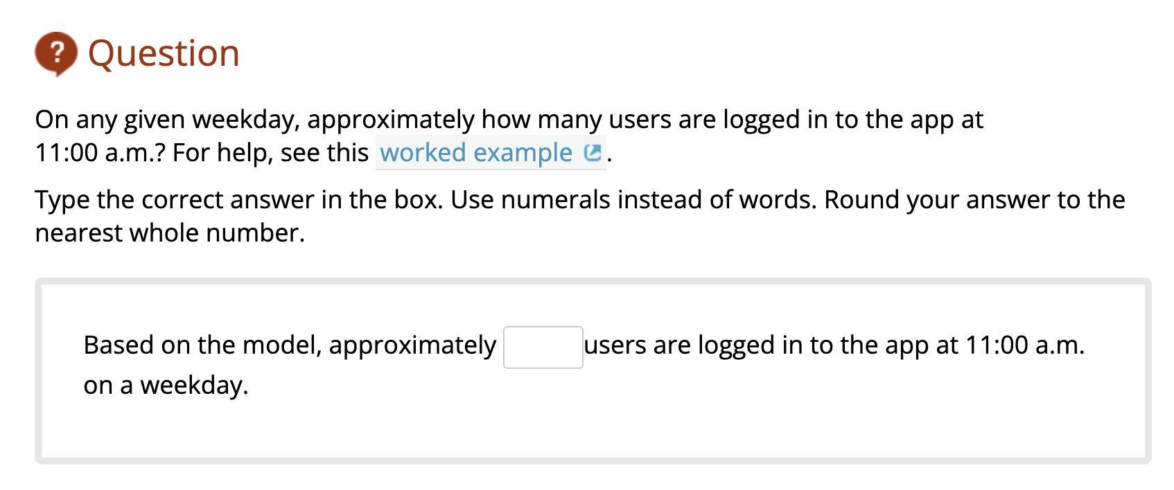 Model for calculating weekday users y = 17.2x² - 226.3x + 2,184.5.