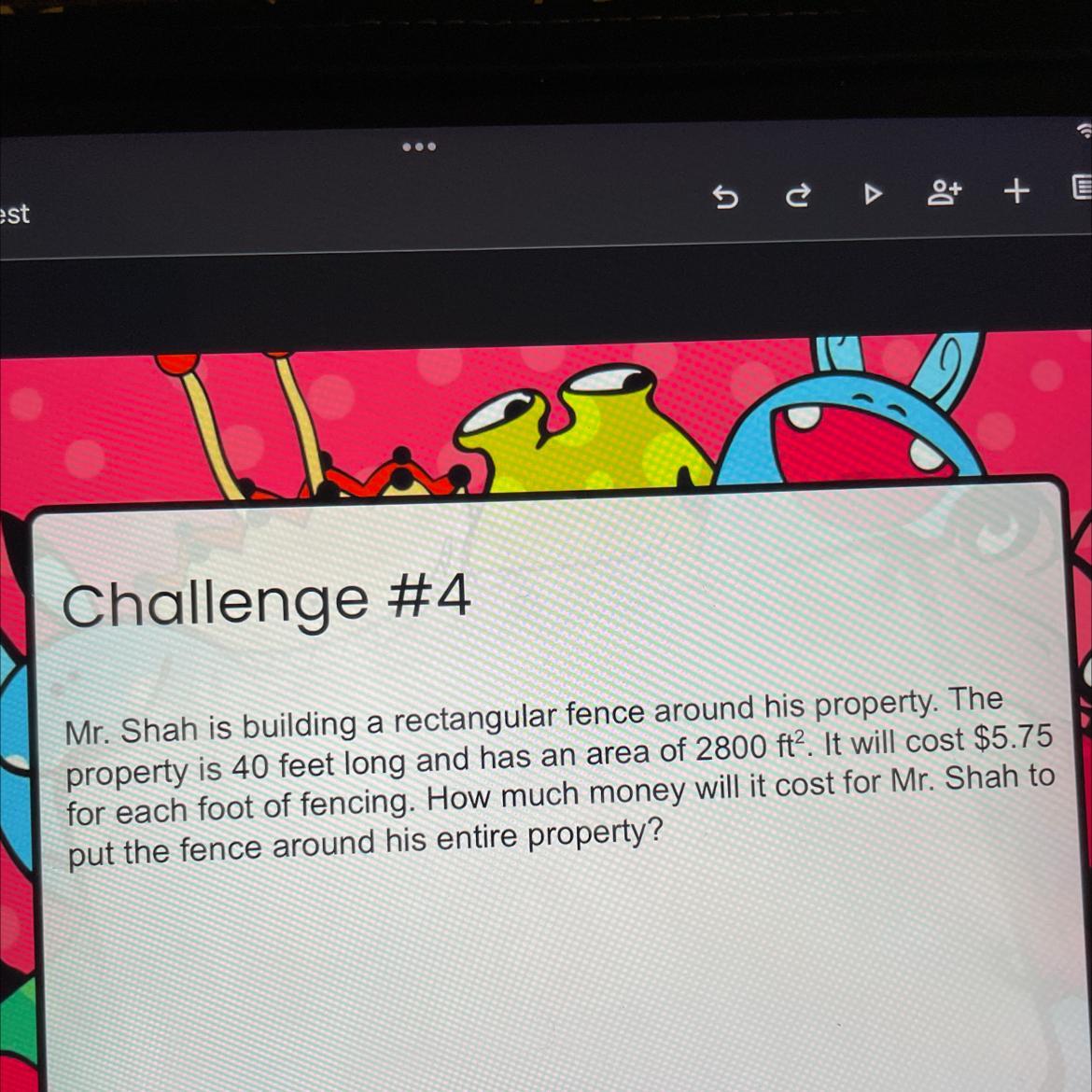 so, if each foot costs 5.75, we can multiply 220 × 5.75 to find the cost: