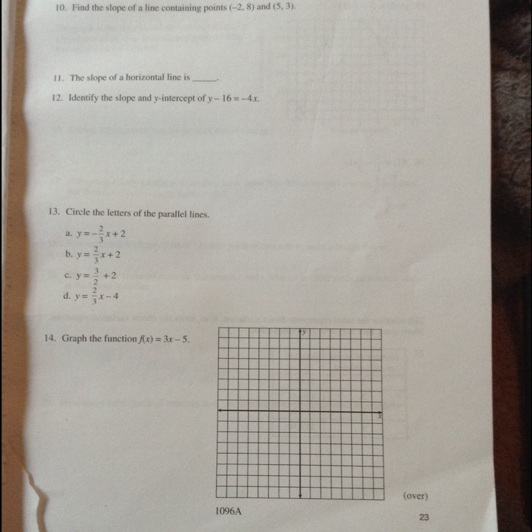 If the line is 3x - 4y = 1 then the line which is parallel will have the same coefficients of x and y. Parallel lines never cross and to ensure this have the same slope. The slope is a ratio which can be solved for in an equation using the coefficients of x and y. Here the slope is: