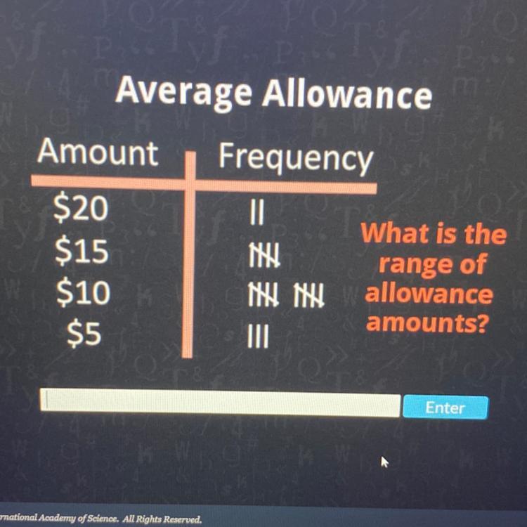 meaning that there is a range of $15 in this data set of allowance amounts